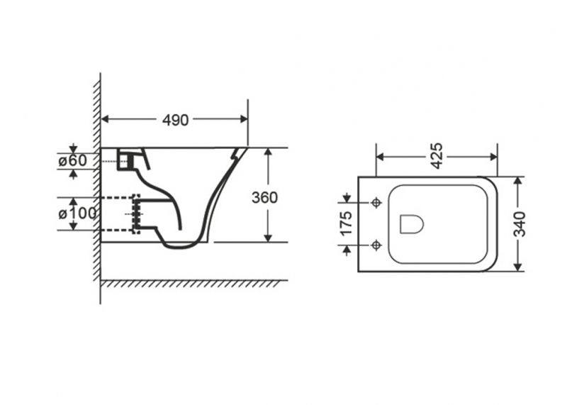 Прилегание унитаза к стене:вплотную