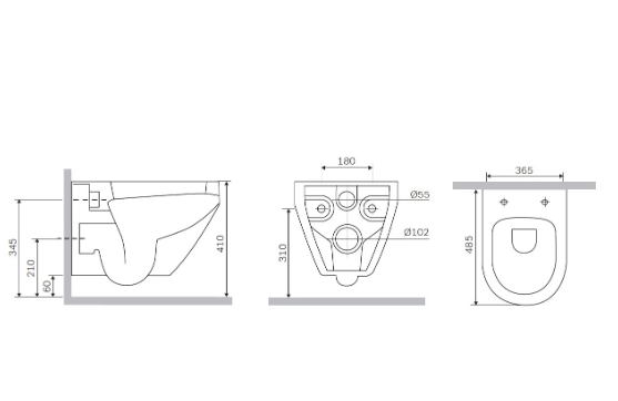 • Прилегание унитаза к стене: