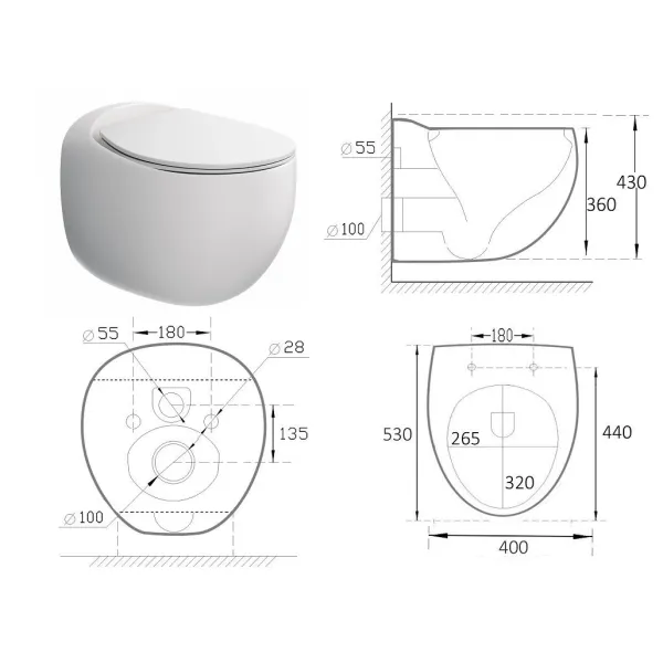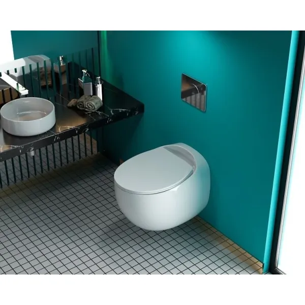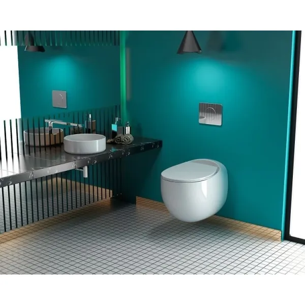 Оснащение: чаша унитаза безободковая, сиденье с микролифтом из дюропласта, быстросъёмное с металлическим креплением