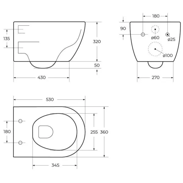 Оснащение: чаша унитаза безободковая, сиденье с микролифтом из дюропласта, быстросъёмное с металлическим креплением