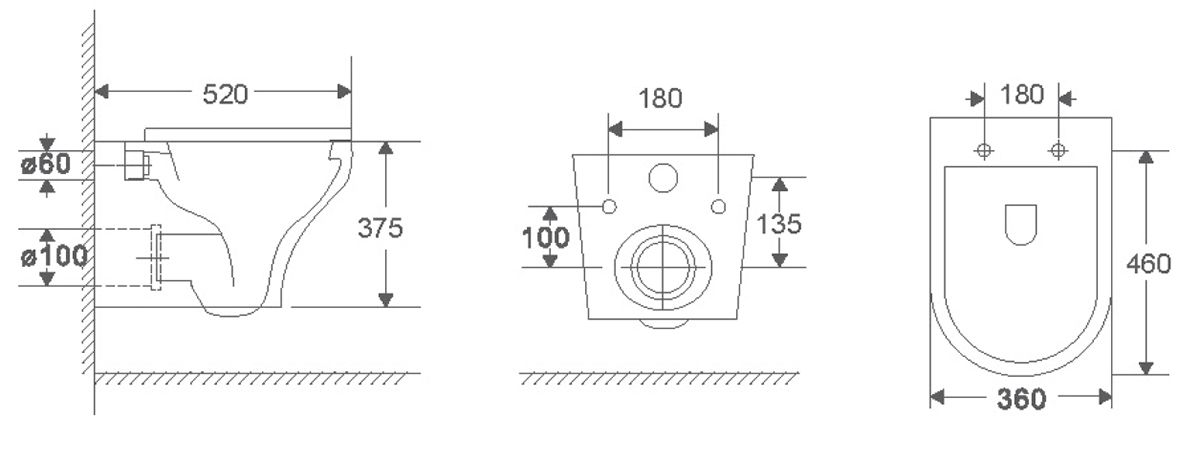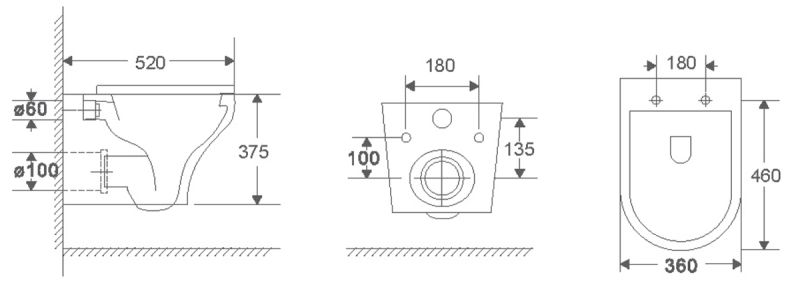 • Прилегание унитаза к стене: