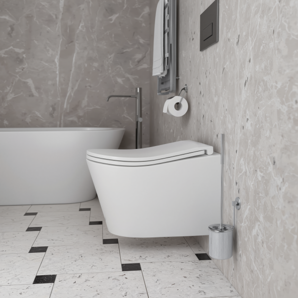 Коллекция подвесных унитазов Bamberg - инновационная форма унитаза. Онемение ног при сидении на унитазе чаще всего связано с кратковременным сдавливанием нервных окончаний и сосудов. Эксклюзивная изогнутая форма унитазов с сиденьем DQ обеспечивают равномерное распределение давления на ягодицы и вы можете наслаждаться более удобной и естественной посадкой. Новая форма снижает дискомфорт и усталость, позволяя вам проводить больше времени в расслабленной позе. Изогнутая форма унитаза не только улучшает комфорт, но и заботится о вашем здоровье, делая каждое посещение туалетной комнаты более приятным и удобным, и вы не пропустите ни один новый ролик в ленте. Подвесные унитазы торговой марки DQ производятся из керамического фарфора. Фарфор, как и фаянс, изготавливается на основе белой глины. Состав этого материала отличается повышенной прочностью благодаря добавлению таких укрепляющих компонентов, как кварц и полевой шпат. Используемая для создания основы глина проходит тщательную проверку качества, что обеспечивает итоговой продукции плотную и сверхгладкую поверхность. В отличие от фаянса, фарфоровые сантехнические устройства имеют небольшой коэффициент водопоглощения. Для фарфора свойственен коэффициент водопоглощения в 0,05%. Температура обжига 1280гр. Подвесные унитазы DQ отличаются: - высоким уровнем механической прочности; - плотной структурой, обеспечивающей устойчивость к различным загрязнениям; пониженный риск появления неприятных запахов из канализационной системы; - простой и легкий уход: технология смыва воды в чаше Tornado создает эффект круговорота. Данная технология позволяет тщательно без брызг обмыть всю чашу, обеспечивая максимальную чистоту и гигиеничность. Каждый унитаз укомплектован сиденьем из дюропласта с крепежным комплектом. Дюропласт - современный вид пластика, основными характеристиками которого являются: 1) повышенная степень защищенности от воздействия химических и механических нагрузок; 2) элементарный монтаж и эксплуатация; 3) наличие антибактериальной защиты; 4) приятный внешний вид и гладкое покрытие; 5) защита поверхности от влияния ультрафиолетового излучения; 6) длительный срок службы благодаря прочному креплению.