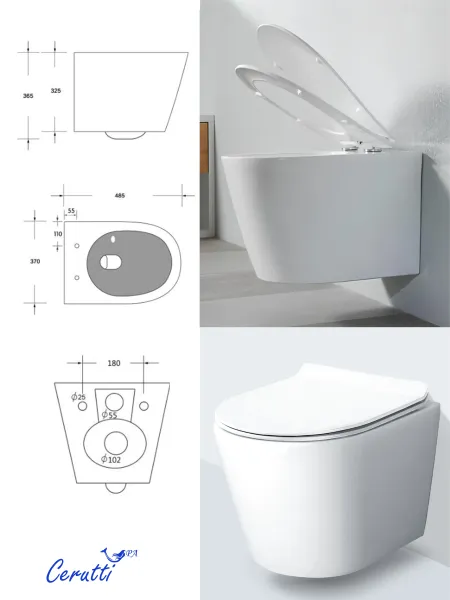 Унитаз подвесной Ceruttispa LUIGI Aria Tornado CT11101 безободковый со смывом торнадо Подробнее