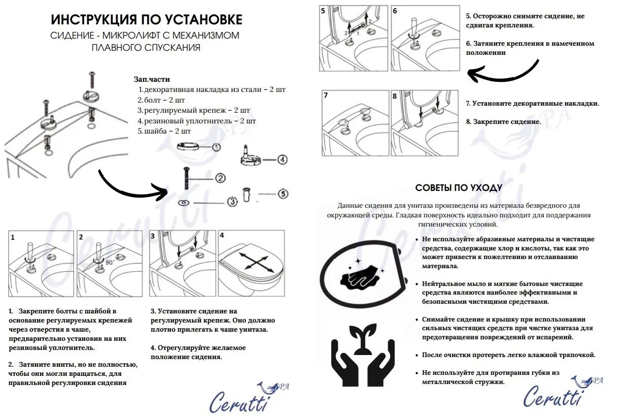 Стекловидный фарфор – это особый вид эмали, которой покрывают изделия, обладающий высочайшим коэффициентом плотности. Такая керамика имеет идеально гладкую поверхность и надежно защищена не только от влаги или загрязнений, но и от бактерий. Покрытие устойчиво к истиранию и воздействию химических веществ. Вода и грязь «скатываются» с поверхности и не впитываются в нее.Особенность подвесных унитазов Ceruttispa в эргономичном использовании пространства. Модель подвесных унитазов можно разместить в уборной любого размера. Также преимуществом выбора такого типа унитаза является отсутствие труднодоступных мест для уборки/мытья пола.В моделях VIOLA Aria Tornado полностью отсутствует ободок! Эти модели не имеют мест, где могла бы скапливаться грязь. В связи с этим унитаз дольше остается чистым и меньше требует уборки едкими моющими средствами.В комплекте присутствует легкосъемное сидение с крышкой, оснащенное системой микролифт (для плавного и бесшумного опускания). Крепления к чаше выполнены из стали, а само сидение - из долговечного полимерного материала – дюропласта с антибактериальным покрытием. Снятие осуществляется одним нажатием кнопки.Смыв в унитазе происходит по принципу TORNADO – поступающая из отверстия в чаше вода мощным потоком закручивается (эффект водоворота) и полностью очищает всю внутреннюю поверхность чаши. При этом воды требуется на качественный смыв в небольшом количестве.Бесшумность - дополнительное преимущество данного унитаза. Внимание! Производитель оставляет за собой право вносить изменения в конструкцию и комплектацию моделей без предварительного уведомления!