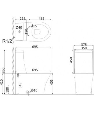 • Прилегание унитаза к стене: