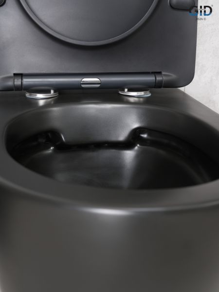 Convexo — коллекция округлых унитазов и биде, идеально подходящих для современных интерьеров. Испанское качество и соответствие европейским нормам — основные черты серии. Подвесной безободковый унитаз GiD Bm2198 - модель с горизонтальным выпуском выполнена из мелкопористой керамики в черном матовом цвете. Оснащена быстросъёмным сиденьем из дюропласта с функцией микролифта, обеспечивающей плавное и бесшумное опускание крышки. Благодаря антигрязевому покрытию и воронкообразной овальной чаше унитаз обеспечивает высокий уровень гигиены и легкость ухода. Комплект: подвесной унитаз GiD Bm2198 с креплениями для скрытого монтажа; сиденье с креплениями.