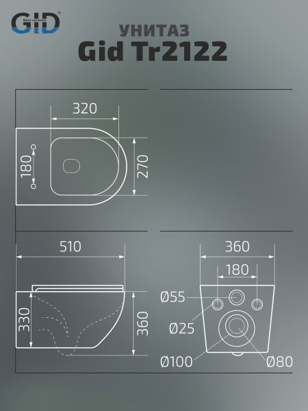 Унитаз подвесной Gid Tr2122 62234Y белый 51x36x36 купить