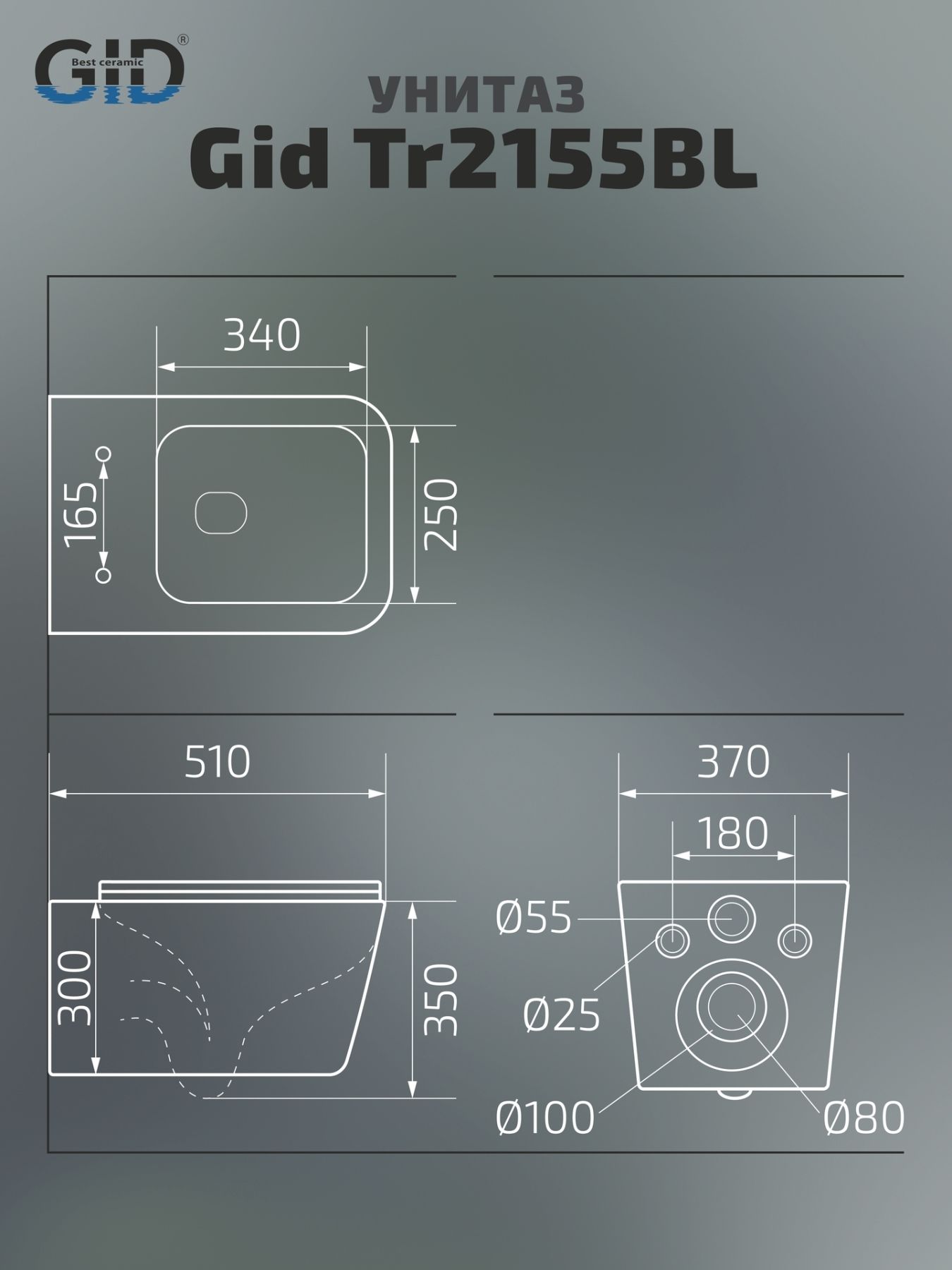 Унитаз подвесной Gid Tr2155BL 62238Y черная глянцевая 51x37x35 купить
