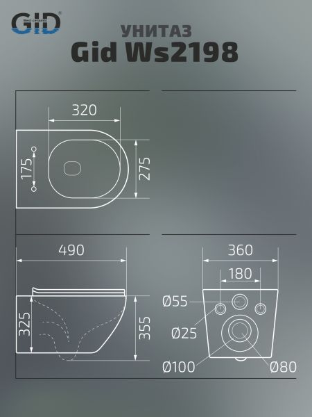 Унитаз подвесной Gid Ws2198 (СС) 62228Y под камень глянцевый 49x36x35.5 купить