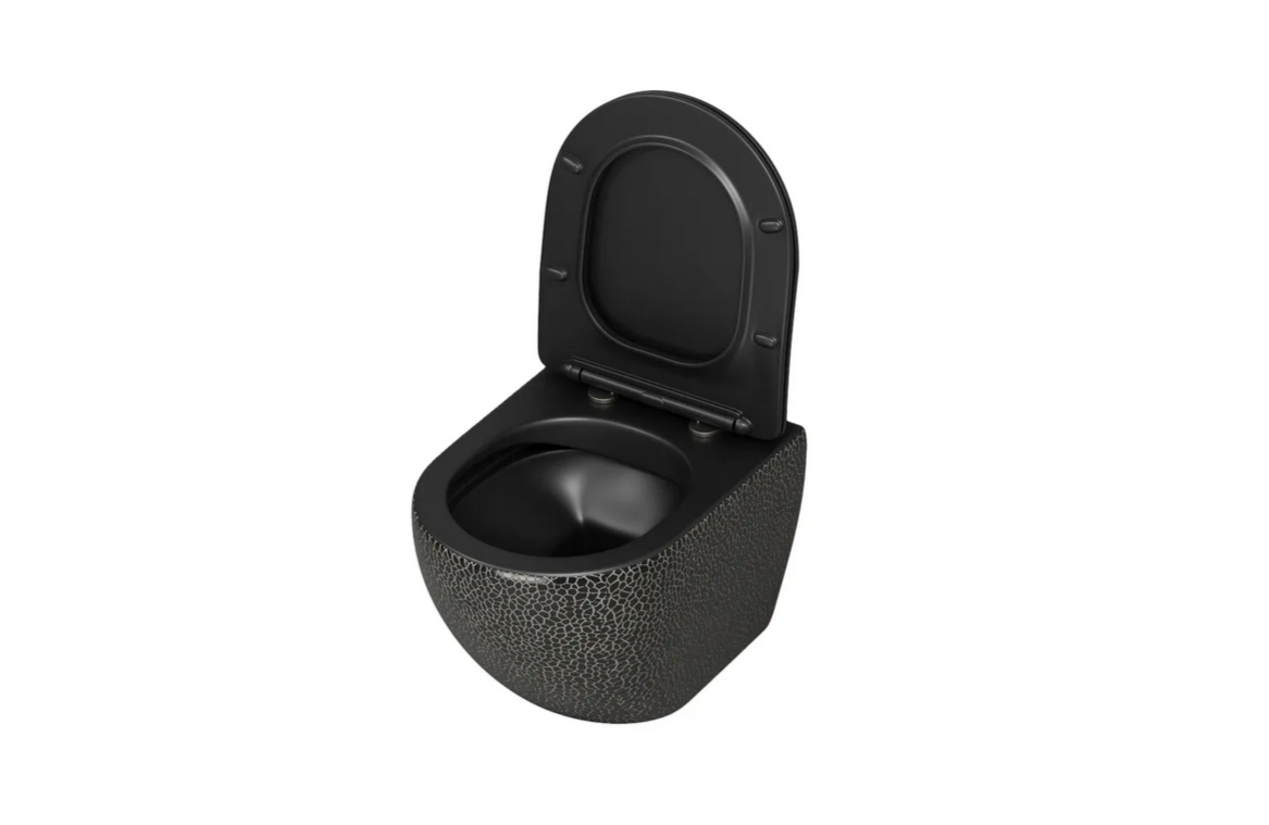 Унитаз подвесной Grossman безободковый чёрный с текстурой кожи крокодила GR-4455BBLS