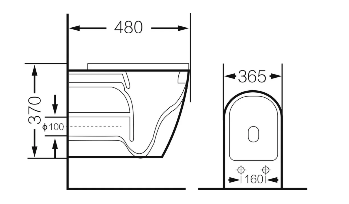 • Прилегание унитаза к стене: