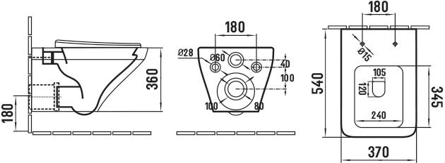 • Прилегание унитаза к стене:
