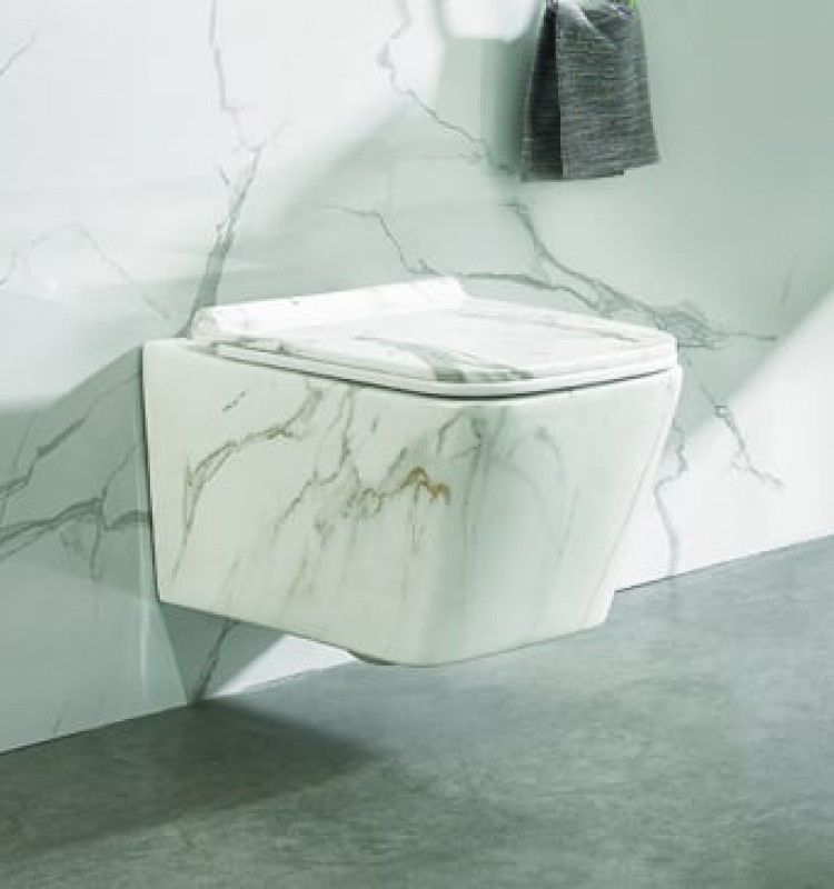 Безободковый подвесной унитаз SantiLine, сиденье микролифт, цвет серый мрамор, SL-5007MRB