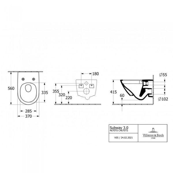 Унитаз подвесной Villeroy Boch с сиденьем Villeroy Boch Subway 3.0, 4670TS01 альпийский белый