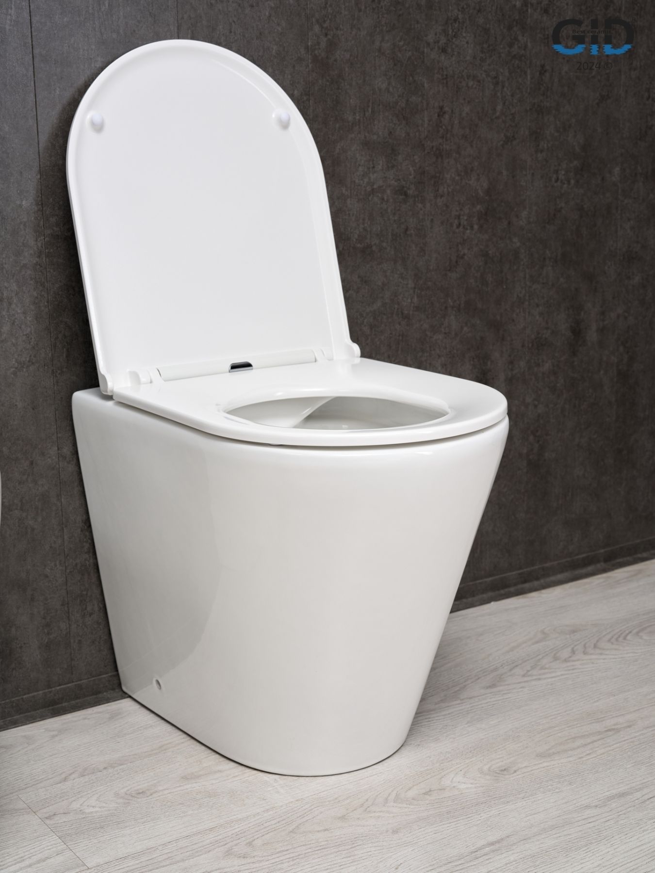 Cortado — стильная коллекция округлых унитазов и биде со скосом к низу. Испанское качество гарантирует надежность, а европейская сертификация подтверждает их качество. Приставной безободковый унитаз GiD TRS-263 — стильная напольная модель с горизонтальным выпуском предназначена для установки со скрытым бачком. Выполнен из высококачественной керамики белого цвета с глянцевым покрытием, что обеспечивает долговечность и уникальный внешний вид. Крышка унитаза изготовлена из прочного дюропласта и оснащена функцией микролифта, которая обеспечивает плавное и бесшумное опускание.