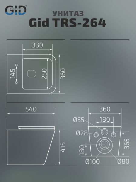 Унитаз приставной Gid TRS-264 62240Y белый 56x34.5x40 купить