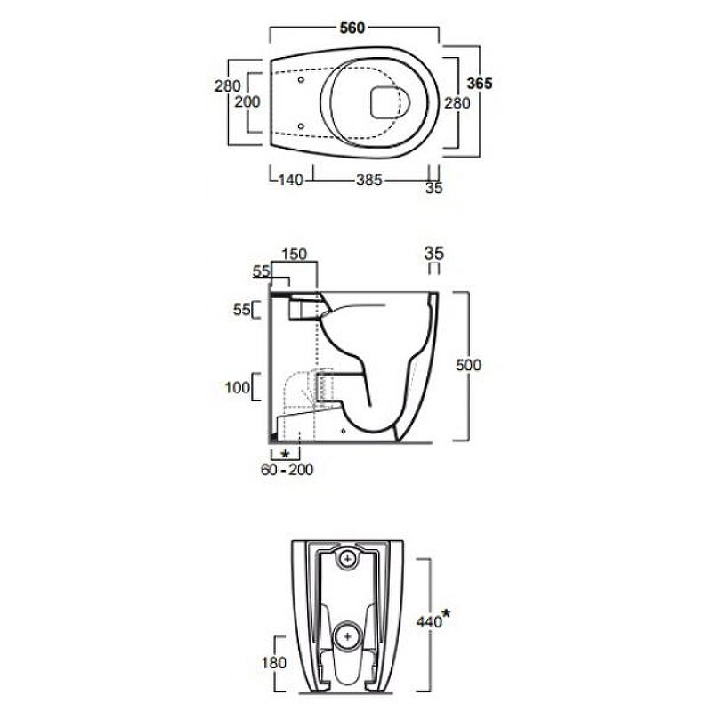 • Прилегание унитаза к стене: