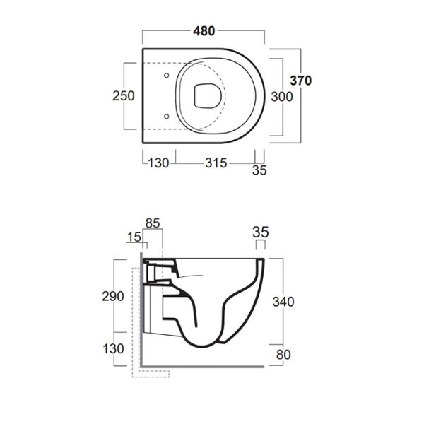 • Прилегание унитаза к стене:
