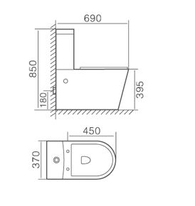 • Прилегание унитаза к стене: