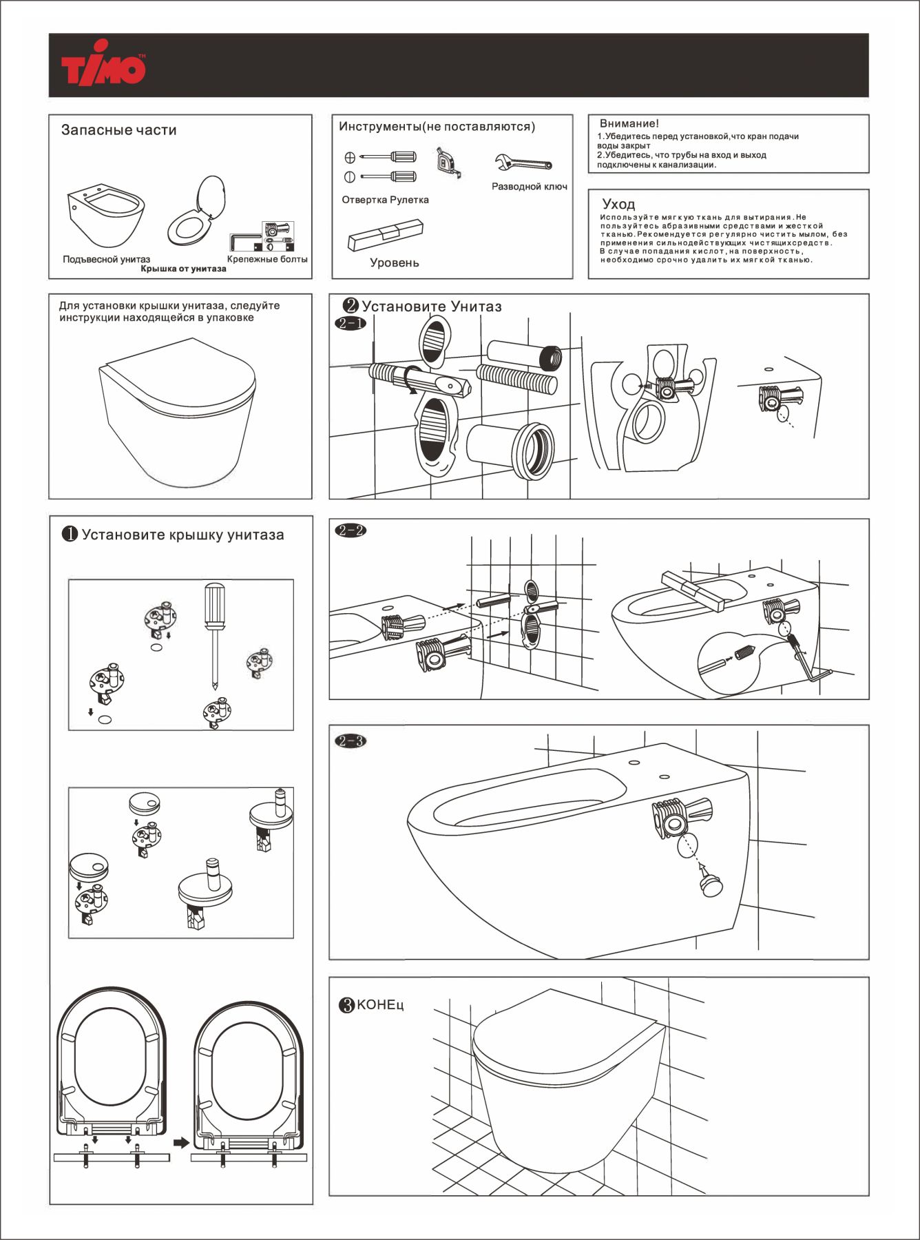 чаша унитаза, сиденье, монтажный набор