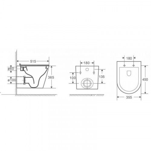 • Прилегание унитаза к стене: