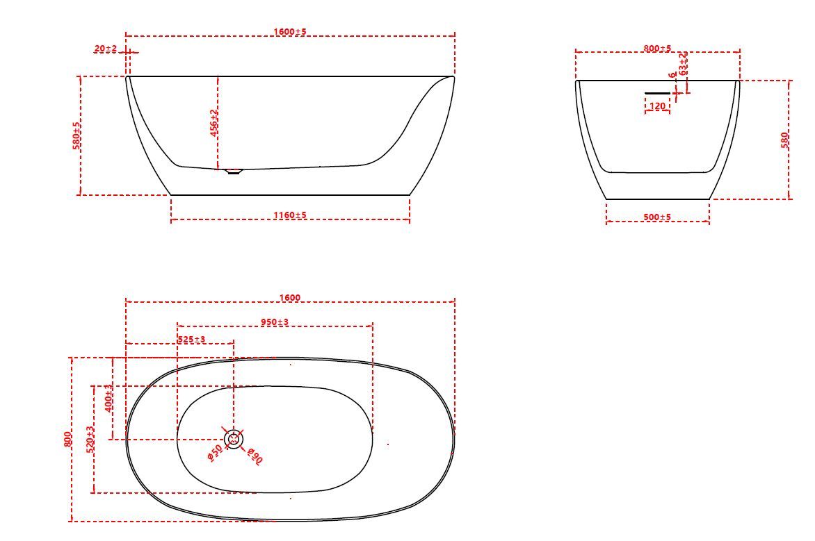 Ванна акриловая Vincea VBT-601-1600, цвет белый, щелевой перелив