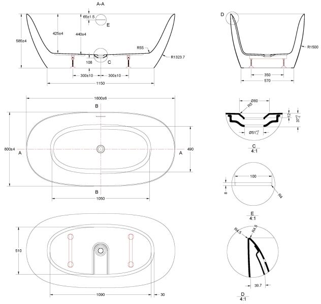 Ванна акриловая Vincea VBT-708-1600, цвет белый, щелевой перелив