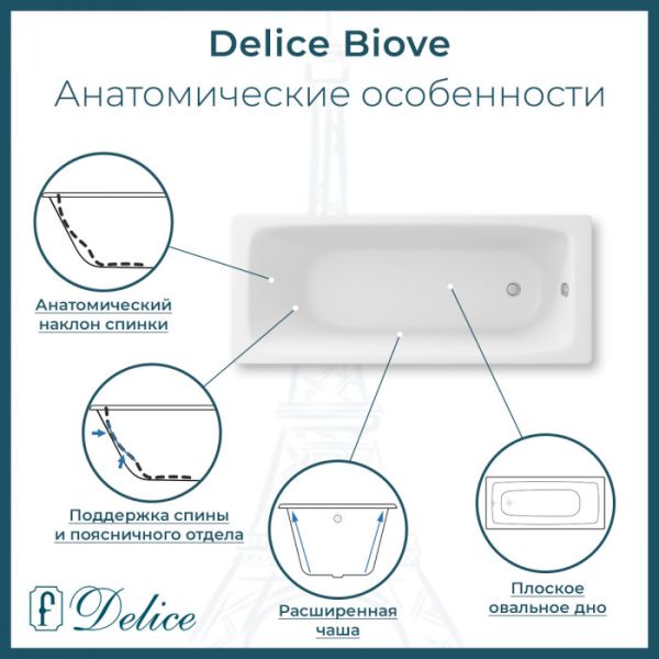 Ванна чугунная Delice Biove DLR220509R-AS 170x75 с ручками купить