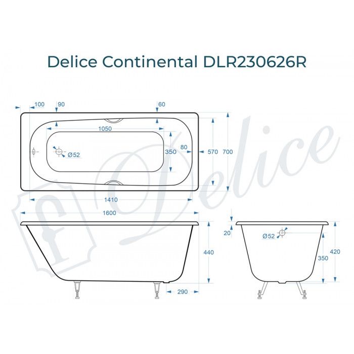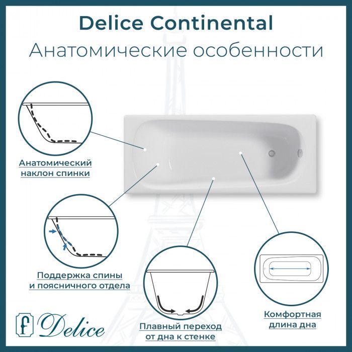 Delice Continental 160х70 с отверстиями под ручки - это уютная стильная модель чугунной ванны для вашего дома. Дизайн ванны спроектирован на основе классической формы с учетом современных тенденций в сантехнике. Внутреннее пространство чаши имеет увеличенный объем, анатомическую форму и широкое дно для максимального комфорта при эксплуатации. Continental 160х70  - это отличное решение для небольших и средних ванных комнат.