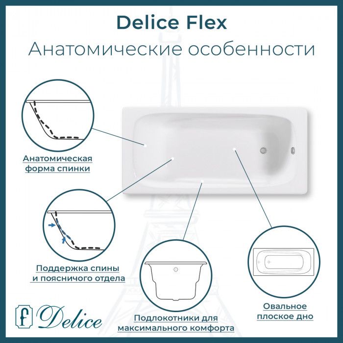 Ванна чугунная Delice Flex DLR230631 170х80 купить