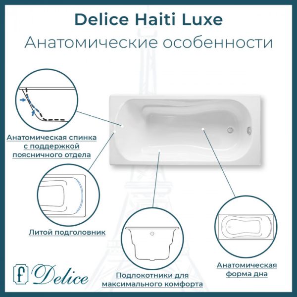 Ванна чугунная Delice Haiti Luxe DLR230636R-AS 150х80 с отверстиями под ручки и антискользящим покрытием купить
