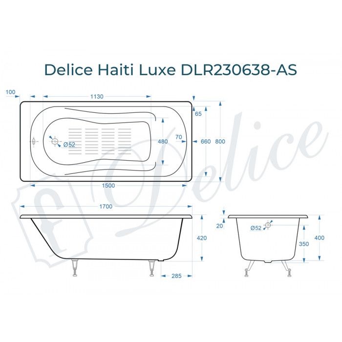 Ванна чугунная Delice Haiti Luxe DLR230638-AS 170х80 с антискользящим покрытием купить