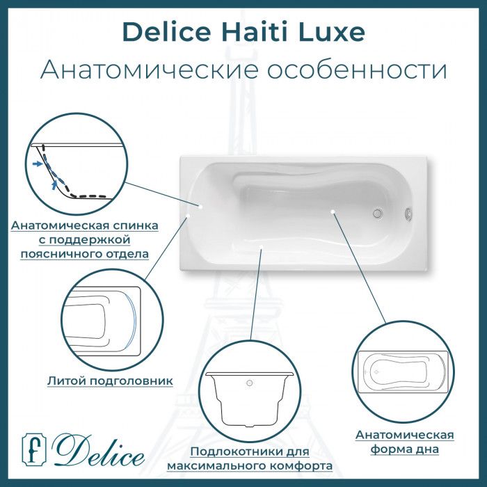 Ванна чугунная Delice Haiti Luxe DLR230639-AS 180х80 с антискользящим покрытием купить
