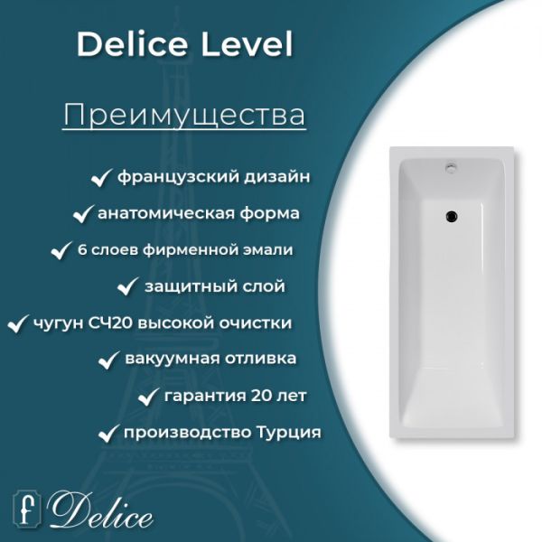 Ванна чугунная Delice Level DLR230602R 170х75 с отверстиями под ручки купить