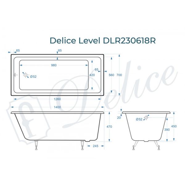 Ванна чугунная Delice Level DLR230618 140х70
