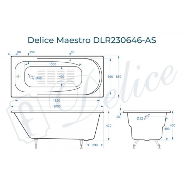 Ванна чугунная Delice Maestro DLR230646-AS 200х85 с антискользящим покрытием Подробнее