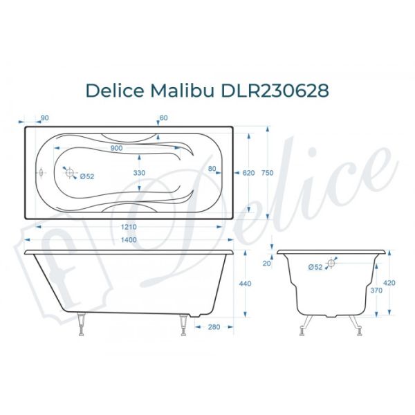 Ванна чугунная Delice Malibu DLR230628 140х75 белая