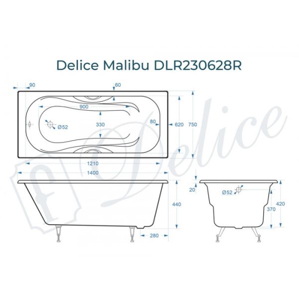 Ванна чугунная Delice Malibu DLR230628R 140х75 с отверстиями под ручки