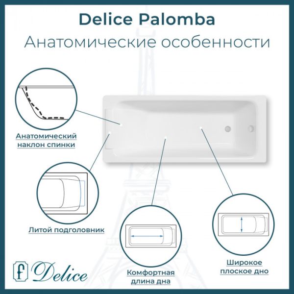 Ванна чугунная Delice Palomba DLR230620-AS 170х70 с антискользящим покрытием купить
