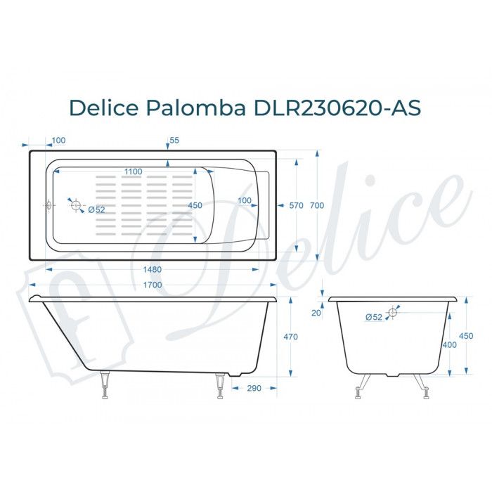 Ванна чугунная Delice Palomba DLR230620-AS 170х70 с антискользящим покрытием