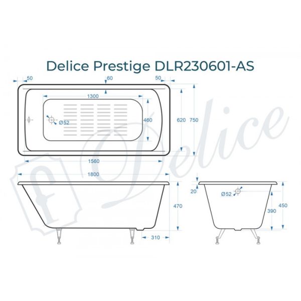 Ванна чугунная Delice Prestige DLR230601-AS 180x75 с антискользящим покрытием