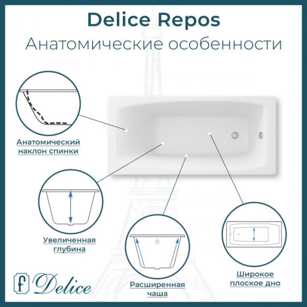 Ванна чугунная Delice Repos DLR220507R-AS 150x70 с ручками