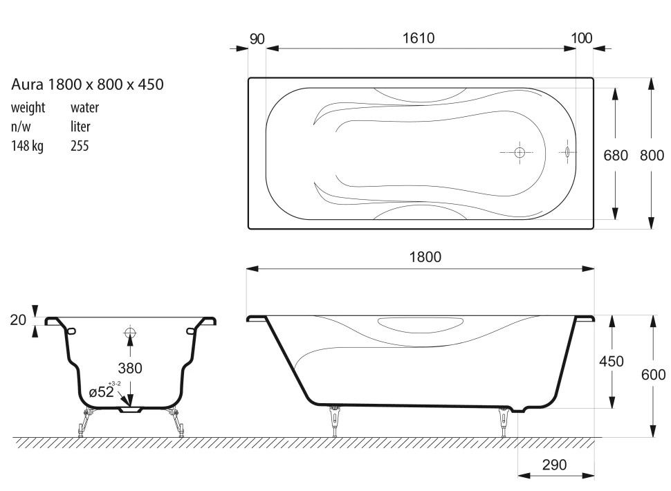 Общие характеристикиРазмер 180x80 Длина 180 см Ширина 80 см Глубина 45 см Высота на ножках 60 см Полезный объём 355 л Вес 148 кг Бренд Vinsent Veron 7 слёв титановой эмали класса 1А Цвет эмали белый Без антискользящего покрытия Диаметр слива Ø52 Расположение перелива стандартное