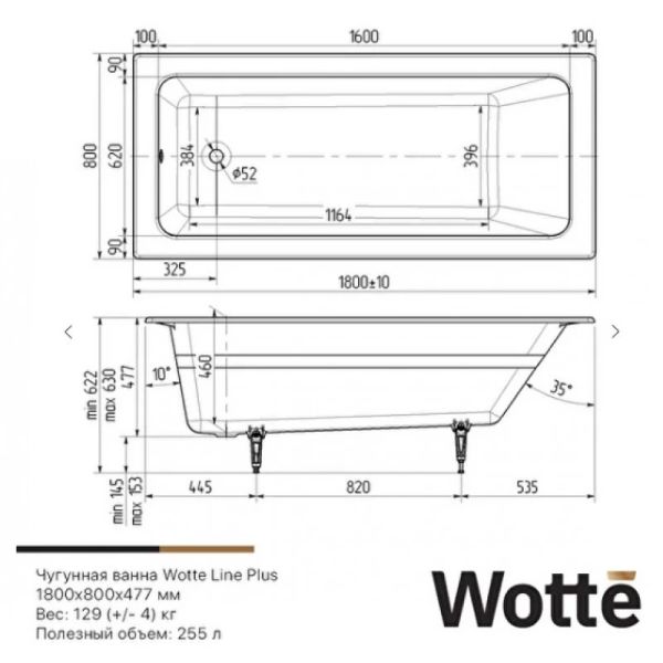 Ванна чугунная Wotte Line Plus 180x80 купить