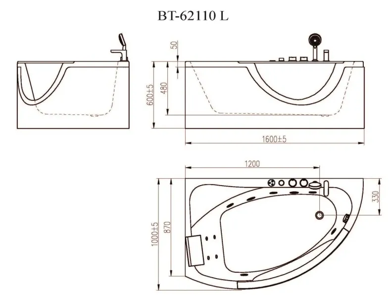 Ванна гидромассажная акриловая Orans BT-62110L 62110L 160x100 см