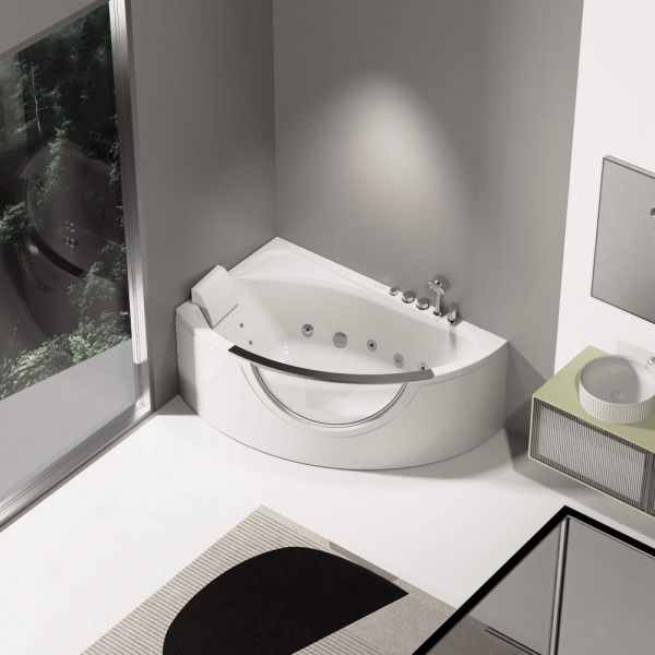 • Современные система гидромассажа с регулируемым подмесом воздуха для выбора интенсивности массажного потока: 5 больших и 4 малых спинных форсунок для гидромассажа;