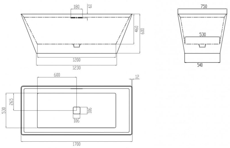 Ванна из искусственного камня ABBER Berlin AM9912G 170x75см серый