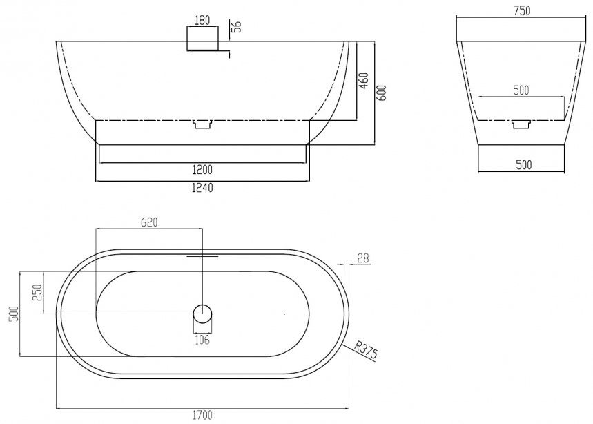 Ванна из искусственного камня ABBER Frankfurt AM9941G 170x75см серый