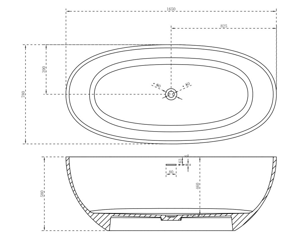 Ванна из искусственного камня ABBER Stein AS9620-1.6 165x78см белый матовый