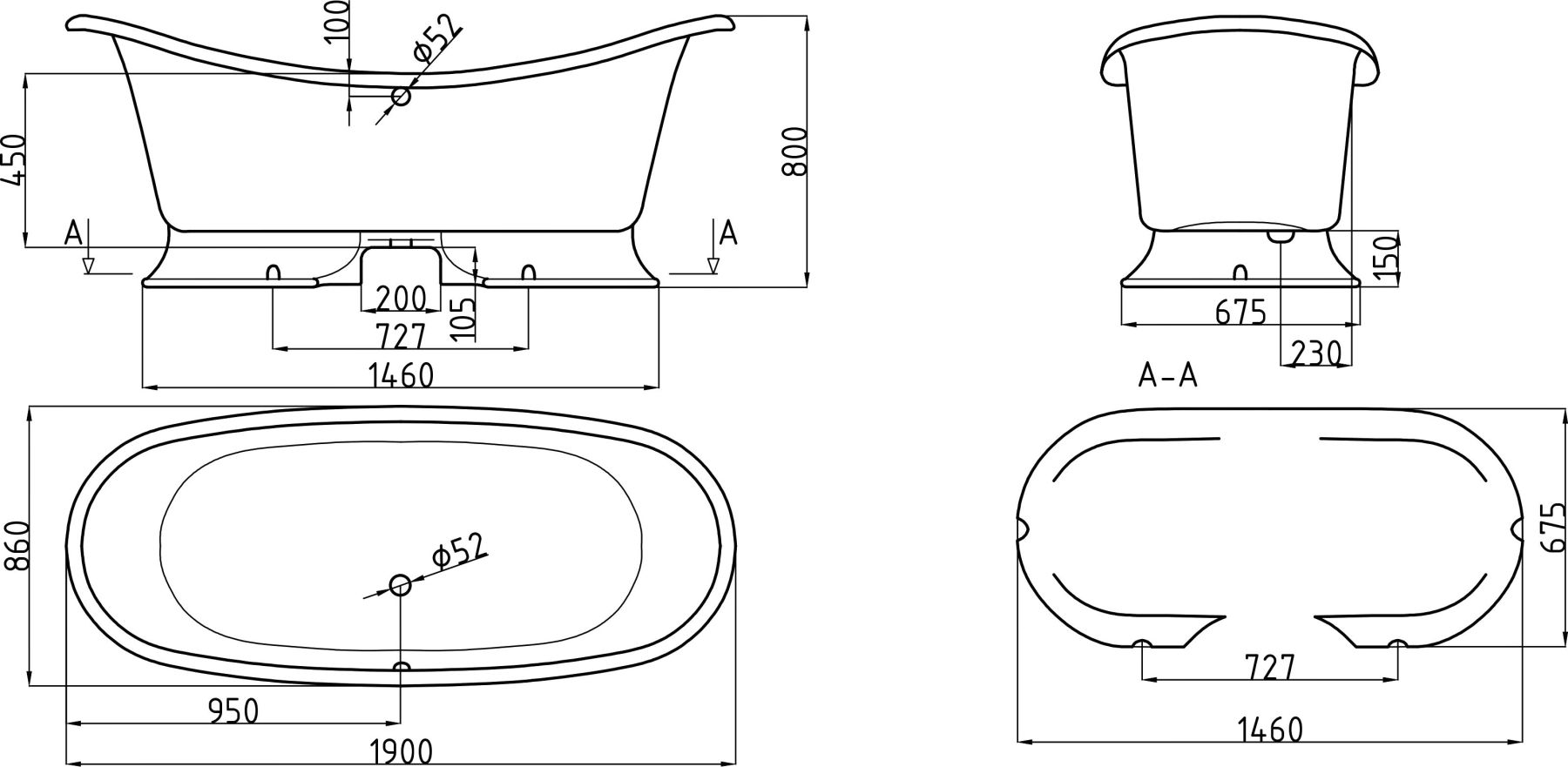 Ванна из искусственного камня AquaStone Лиона 190x86см белый купить